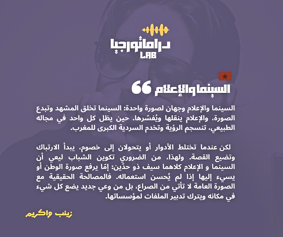 بإحداثها لـ Dramaturgia Lab، فتحات واحد الفضاء ديال التفكير، التبادل والتجريب حول الكتابة الدرامية، اللي كاتعتبرها الأساس ديال أي إبداع سينمائي ولا مسرحي.